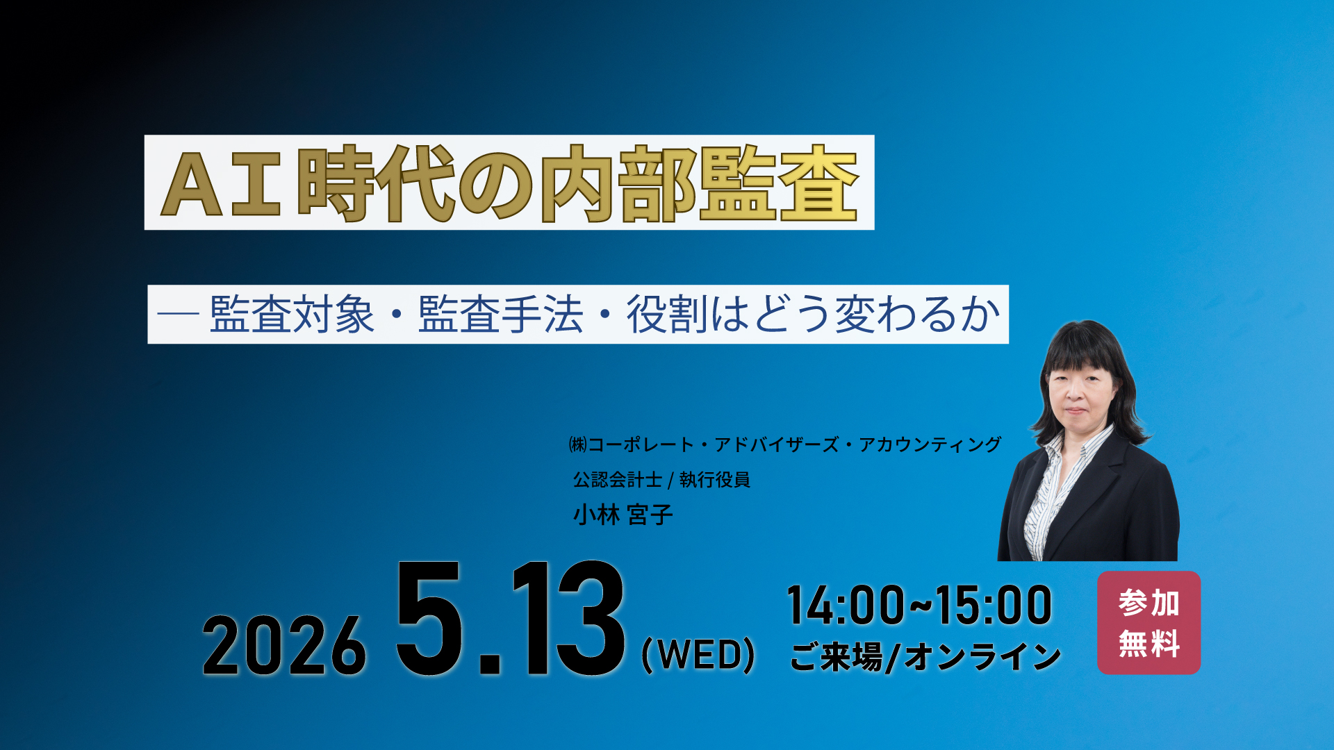 | 日時 | 2026年5月13日(水)14:00-15:00(オンライン・来場) |